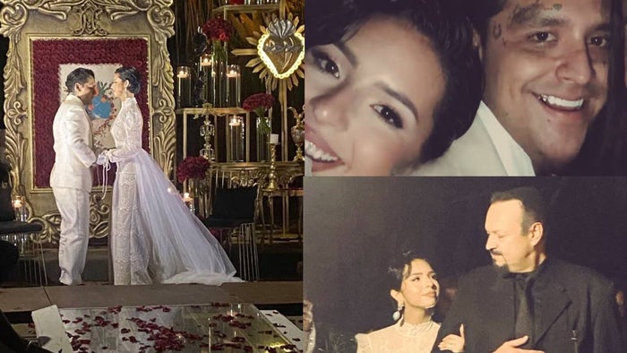 Entre las imágenes que se volvieron virales se encuentra una donde Ángela Aguilar y Christian Nodal aparecen tomados de la mano, así como otra donde el padre de Ángela, Pepe Aguilar, la conduce hacia el altar.