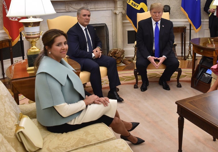La primera dama de la Nación lució un traje diseñado en el año 2017. Lo hizo en compañía de su esposo Iván Duque, del presidente de Estados Unidos, Donald Trump, y de la primera dama de los estadounidenses Melania Trump. Su vestuario desató todo tipo de reacciones, a favor y en contra, respecto a si fue o no la manera más adecuada de presentarse en la capital estadounidense.
