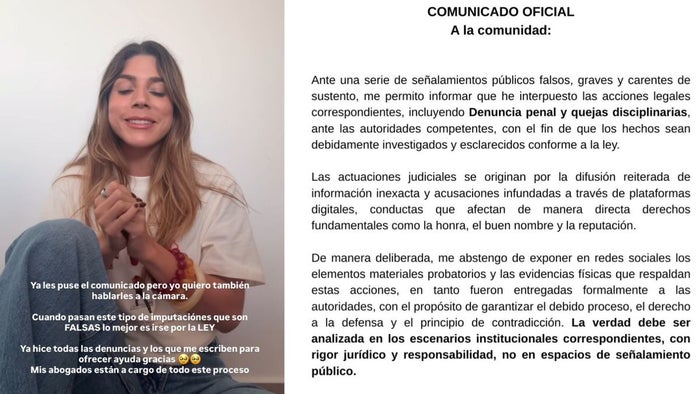 “Ante una serie de señalamientos públicos falsos, graves y carentes de sustento, me permito informar que he interpuesto las acciones legales correspondientes”, expresó la soberana en el comunicado, en el que dejó claro que el caso ya se encuentra en manos de las autoridades.