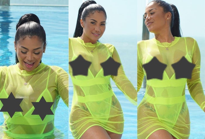 La esposa de Mr. Black retó las políticas de censura de Instagram al aparecer en la fotografía con un traje de baño transparente que hizo ver de más y no dejó nada a la imaginación de los internautas.