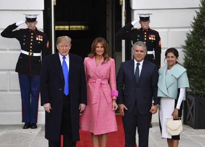 Duque llegó al jardín sur de la Casa Blanca hacia el mediodía, acompañado de su esposa, María Juliana Ruiz, y ambos saludaron a Trump y la primera dama de EE.UU., Melania, en la entrada de la residencia.