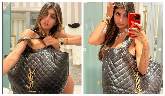 Recientemente, Mia Khalifa subió unas fotos sin 'nadita' de ropa desafiando las reglas de la red social anteriormente mencionada. En unas solo se tapa con unas letras y en otras con una sudadera rosada.