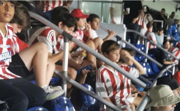 Milan estuvo en la gradería occidental numerada donde estuvo compartiendo con otros pequeños aficionados también al Junior, como también quedó registrado en videos.