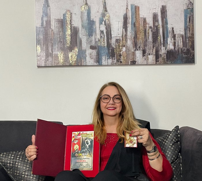 La doctora Carmen Mirabal se siente muy agradecida con la prensa colombiana, que le hizo un reconocimiento por sus 50 años en la industria del entretenimiento. La asociación de prensa CORPRESA y su presidente Efraín Marino, le hicieron entrega de un pergamino metálico por su trayectoria.
