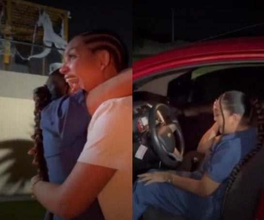 La empleada desbordada en alegría no pudo contener las lágrimas y agradeció a su jefa 'La Valdiri' quien le manifestó su agradecimiento porque durante siete años ha estado a su servicio y ha cuidado a sus más grandes tesoros (Isabella y Adhara), sus hijas.