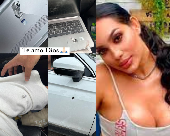 La reconocida influencer Andrea valdiris y su esposo Felipe Saruma dieron a conocer a través de sus redes sociales el angustioso momento que vivió al interior de su vehículo el cual fue impactado por un arma de fuego mientras se movilizaba por la vía san Onofre (Sucre) en el video se ve como la bala atravesó el carro, rozo su pierna e impacto un computador que ella llevaba.