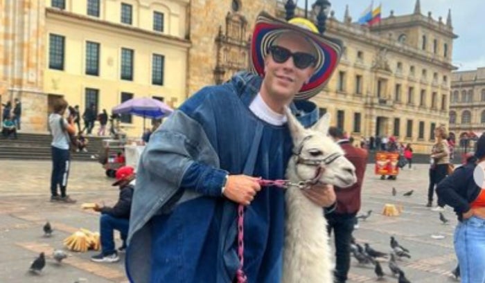 Entre las imágenes del podcaster se le ve en el Congreso de la República, primero de espaldas y luego mirando a la cámara con unas gafas de sol. En la siguiente está posando con una ruana juvenil, sombrero vueltiao y junto a una llama.