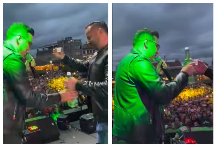 En su cuenta de Instagram, Yeison Jiménez compartió un video en el que se ve con micrófono en mano en tremenda presentación, cuando alguien le ofrece una copa de licor. Pero él se la devuelve y le dice: “recíbame usted este, que es más decentico”.