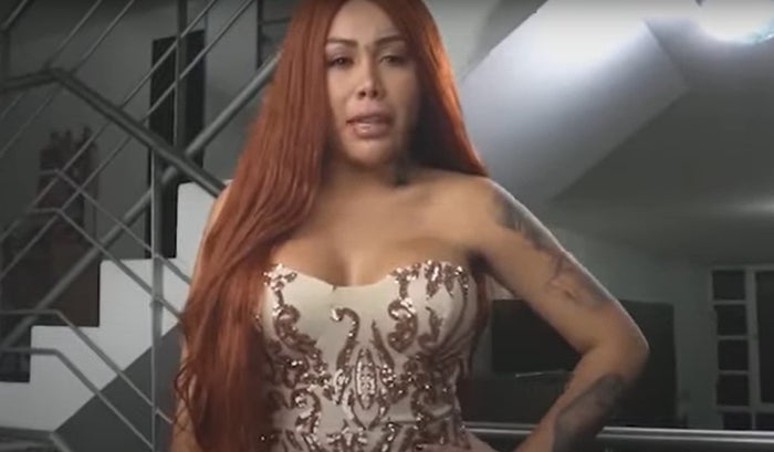 Yina aparece luciendo un vestido largo de color claro, con brillantes y un escote, mientras lleva una peluca de color rojizo. Su forma de presentar causó reacciones en los usuarios de Instagram, quienes se burlaron y la compararon con Andrea Serna.