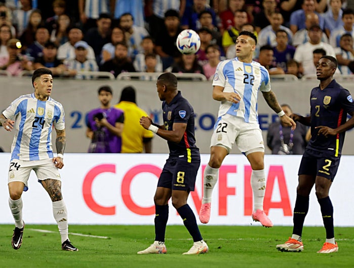 Apenas inició el compromiso, Ecuador tuvo las primeras opciones de romper el arco argentino. Sobre los seis minutos, Alexis Mac Allister desvió un centro a su propia portería y Emiliano Martínez despejó. Luego, Jeremy Sarmiento impactó y el ‘Dibu’ volvió a salvar. El rebote le quedó a Kendry Páez que remató por encima del larguero.