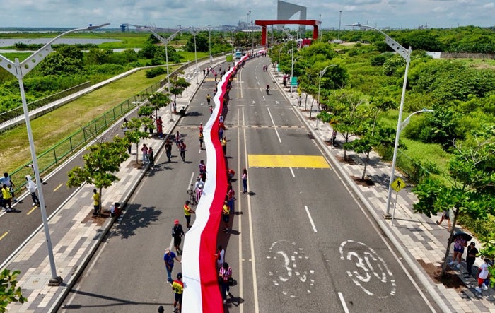 En su cuenta de X, Alejandro Char, alcalde de la ciudad escribió: "Día histórico para el fútbol a nivel global: en #Los100DelJunior romperemos récord presentando la bandera más larga del mundo. Qué bonito se ve nuestro Gran Malecón pintado de rojiblanco, con esta bandera de 10.2 kilómetros que arropa el corazón de todos los junioristas y que nos une en el sentimiento más lindo e inexplicable, llamado ¡Junior tu papá!".