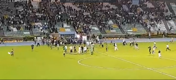 En los instantes finales, los hinchas del cuadro ‘cuyabro’ entraron al terreno de juego para agredir al central del compromiso, Wilmar Roldán sin importar la presencia de la Policía y además, fueron a encarar a los seguidores que acompañaron al elenco capitalino.