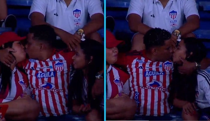 Durante el entretiempo, las cámaras enfocaron a un hombre que estaba en la tribuna con dos mujeres. Al verse en la pantalla gigante, el aficionado primero besó a la que tenía al lado, generando aplausos y risas de los asistentes. Pero eso no fue todo, segundos después, repitió la acción con la otra acompañante, desatando la euforia de todos los hinchas y de quienes seguían el partido por televisión.