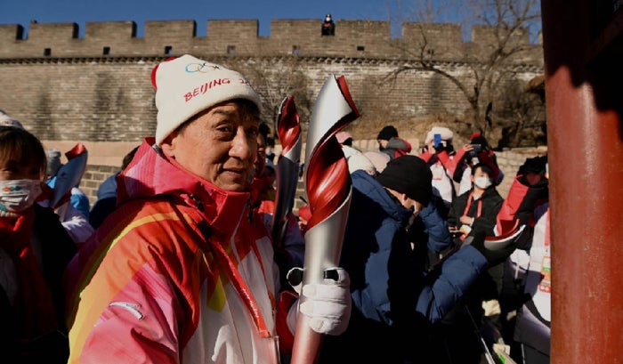 En su corto recorrido a través de China, la llama olímpica llegó el jueves de la mano de Jackie Chan a la Gran Muralla, en la víspera de la ceremonia de apertura de los Juegos de Invierno de 2022.