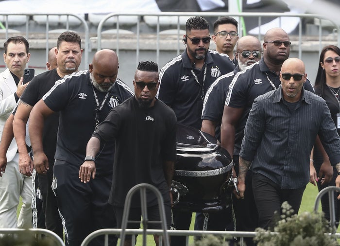 Miles de seguidores que aguardaban desde la noche del domingo, despiden este lunes con flores y juegos artificiales al 'rey' del fútbol, Edson Arantes Do Nascimento Pelé, en el estadio de Santos, club al que el tricampeón del mundo agradeció eternamente y con el que compartió la mayor parte de su vida.