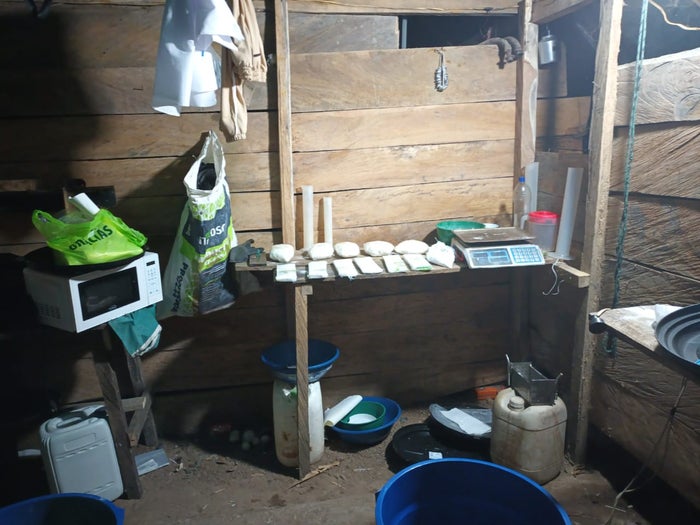 Durante el operativo de búsqueda, los uniformados se encuentran una casa artesanal, en cuyo interior, de acuerdo a los materiales encontrados hace deducir a las autoridades que allí se fabrican estupefacientes.