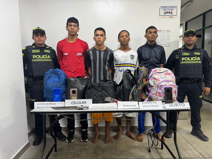 “Durante las estrategias diferenciales para la reducción del hurto, se logró la captura de cuatro sujetos y la aprehensión de un adolescente vinculados al delito de hurto calificado y agravado, en concurso con fabricación, tráfico o porte de armas de fuego”, indicó la Policía Metropolitana de Barranquilla.