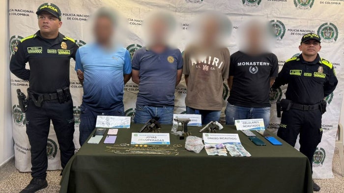 También fueron detenidos alias “Kevin”, con ocho anotaciones judiciales; alias “Joyce”, con seis; y alias “Víctor”, con cinco, todos relacionados con delitos como hurto, porte ilegal de armas, tráfico de estupefacientes, amenazas y estafa. En conjunto, los cuatro capturados suman 20 anotaciones judiciales.