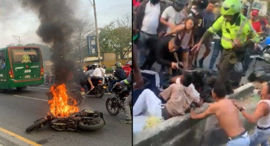 ¡Paloterapia en Barranquilla! Comunidad enardecida linchó a presuntos rateros y les prendieron la moto
