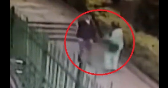 Posteriormente en otro ángulo de la cámara se observa como los delincuentes salen corriendo y el que le había robado el bolso a la mujer, lo arroja hacia el jardín de uno de los conjuntos y continúan con su camino.