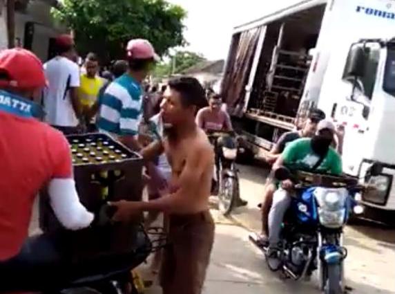 De acuerdo a un video de los hechos, se observa a los habitantes, corriendo apresurados con las cajas de la bebida alcohólica. En las imágenes se aprecia cómo adultos, jóvenes, y hasta mujeres, huyen del lugar, cargando una y dos cajas de cerveza, algunos de los cuales, las llevan en motocicletas.