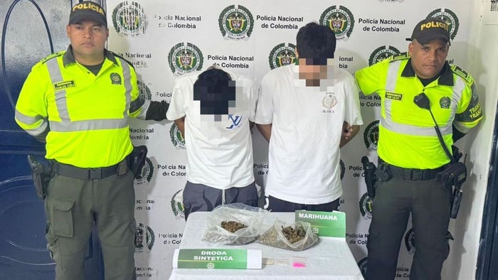 Posteriormente, en un segundo procedimiento realizado en el kilómetro 64 de la Vía Oriental (jurisdicción del municipio de Sabanagrande), se capturó a dos hombres de 24 y 20 años. Los implicados se movilizaban como pasajeros en un bus de servicio público y, tras un registro a sus pertenencias, se les incautó una bolsa con 374 gramos de marihuana y 6 gramos de droga sintética. Los capturados y las sustancias incautadas fueron dejados a disposición de la Fiscalía General de la Nación.