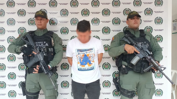 Luego de varios días de investigación el Gaula e Inteligencia de la Policía del Huila lograron la ubicación exacta del sujeto fue capturado en flagrancia en Suaza Huila, cuando hacía una llamada extorsiva en donde exigía 20 millones de pesos.