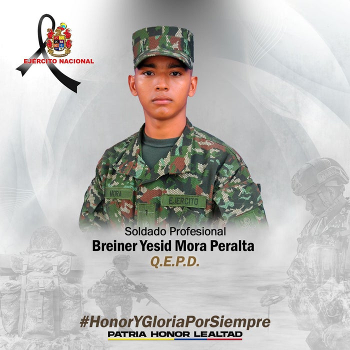 A través de un comunicado, la Novena Brigada informó que, “en horas de la mañana, las tropas, en cumplimiento de su deber constitucional de proteger la vida e integridad de los pobladores, sostuvieron combate de encuentro contra miembros de dicha estructura en la vereda Galilea, donde lamentablemente fue asesinado nuestro Soldado Profesional Breiner Yesid Mora Peralta”.