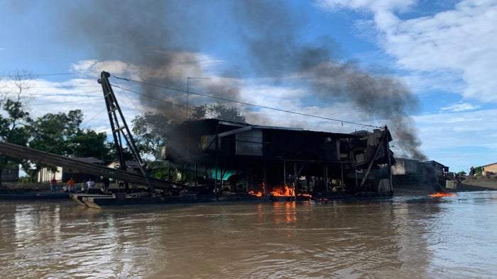 Las tropas hallaron y destruyeron, de manera controlada, cinco unidades de producción minera, cinco dragas, dos excavadoras, seis motores industriales, cinco motobombas y cinco motores generadores de energía, utilizados comúnmente para la extracción ilícita de yacimientos mineros.