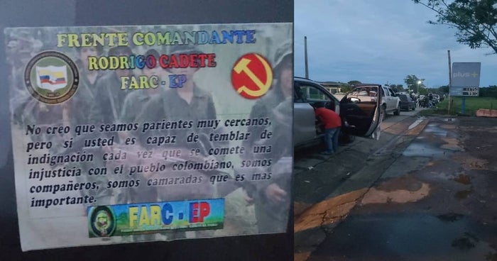 A los vehículos que fueron retenidos le pegaron panfletos alusivos al frente comandante Rodrigo Cadete Farc EP.