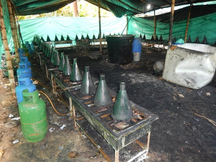 Según las autoridades, para el funcionamiento de estos laboratorios ilegales, contaban con una (1) caldera, diez (10) hornos microondas, tres (3) mesas de secado, trece (13) canecas con capacidad de almacenar cinco (5) galones, 38 julianas vacías, cinco (5) probetas, un (1) transformador, 25 recipientes metálicos con capacidad de almacenar 55 galones, un (1) motor de 1400 hp, un (1) panel de energía y tres (3) mezcladores.