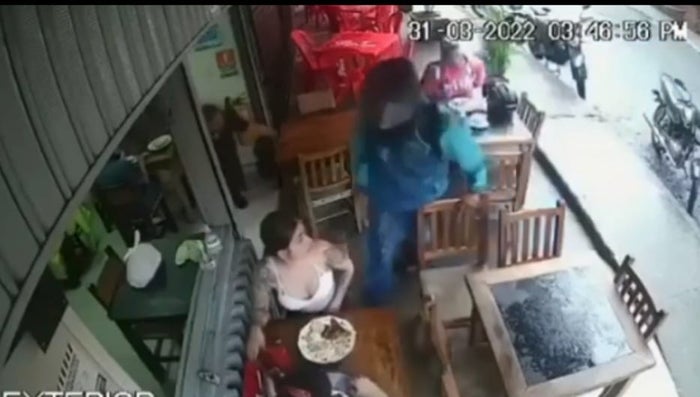 De manera valerosa, el comerciante se le abalanzó y evitó que el delincuente robara a otras personas que se encontraban en el sitio. En un video de una cámara de seguridad se muestra el momento en que el ladrón le hurta los celulares a una mujer y otra persona que se encontraba en el sitio, luego ingresó al sitio y se observa el forcejeo con el propietario del sitio.