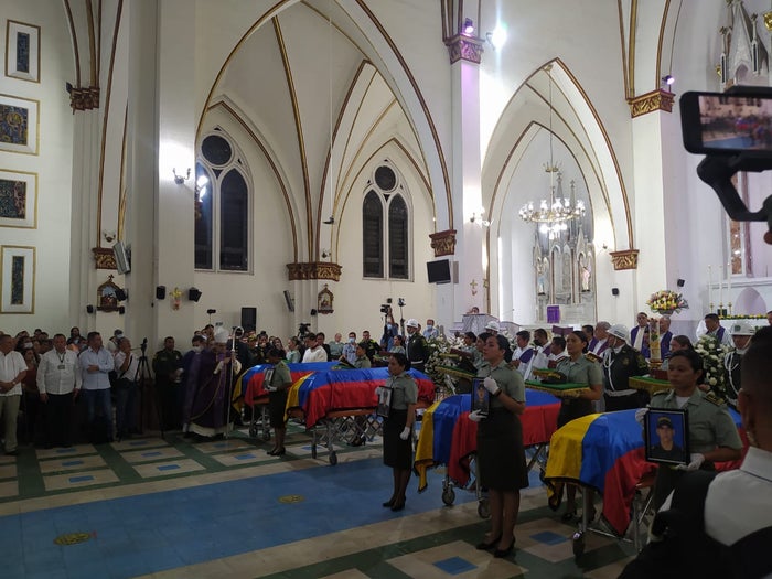 Con unas solemne Eucaristía en la Catedral la Inmaculada Concepción, presidida por Monseñor Víctor Manuel Ochoa y con la presencia del presidente Gustavo Petro, el ministro del Defensa Iván Velásquez Gómez y altos mandos militares, se realizaron las honras fúnebres en homenaje a cinco de los siete uniformados asesinados en Neiva, Huila.