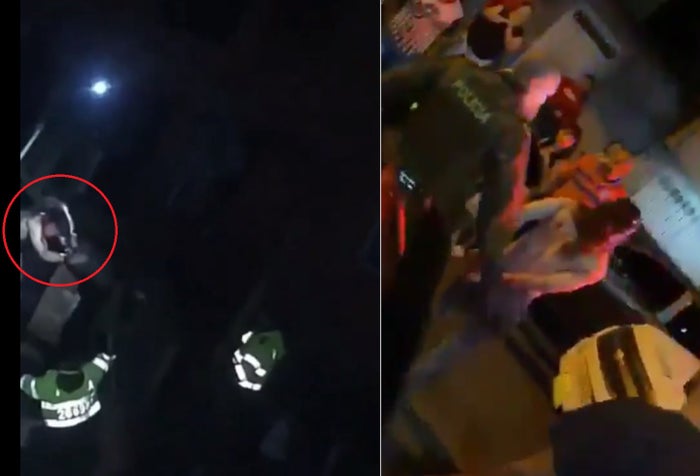 "Un joven de 24 años se encontraba agrediendo físicamente y con arma blanca a su mamá, de 52 años, y su padrastro, de 56 (...) Con la presencia de los uniformados, esta persona suspende la actividad, intenta huir por los techos de la vivienda", relató el coronel José Galindo, oficial de la Policía Metropolitana del Valle de Aburrá.