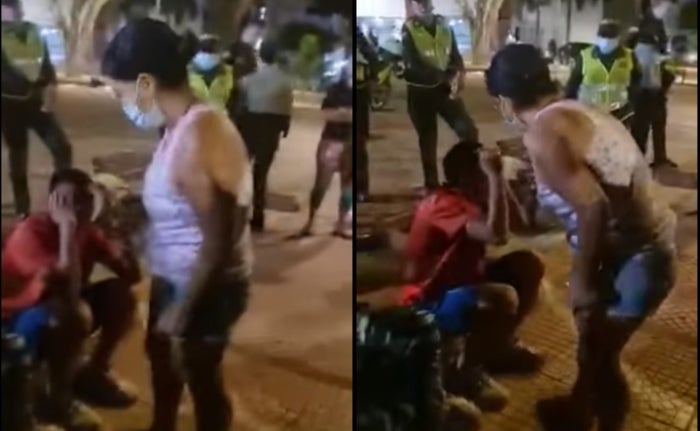 “Muy lindo, que belleza usted, no le da pena, mire en lo que me pone”, se escucha decir a la enojada a su hijo que está sentado en el parque rodeado de policías.