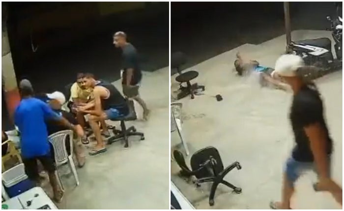 El delincuente cae al piso, mientras su cómplice alcanza a huir con los dos celulares robados. El sujeto en el piso al final es golpeado nuevamente. Por las placas de la motocicleta se deduce que los hechos ocurrieron en Brasil.