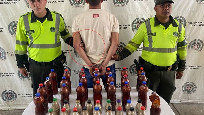 Durante la inspección, "los policías detectaron inconsistencias que despertaron sospechas, lo que llevó a una revisión más detallada del carro". Fue así como descubrieron que la droga era transportada bajo la modalidad de “caleta”, oculta en los estribos de las puertas. En total, hallaron 23 botellas plásticas de un litro y 23 botellas de 350 mililitros con base de cocaína, con un peso aproximado de 37 kilogramos, avaluados en cerca de 98 millones de pesos.