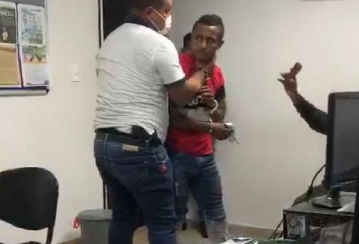 "Llega el comandante de la Sijín y me pregunta que si soy Jeiner, yo le dije que si. Me dice que firme un papel para la libertad y cuando me paró a firmar, el muchacho no había terminado de llenar todo el papel, me dice que me siente y cuando me voy a sentar, es cuando se acerca, me coge por el cuello y me golpea. Me vuelve a agarrar por el cuello, me agarra por la espalda, me estrella contra la pared, me pega unas patadas y vuelve a hacerlo varias veces", relató el joven.
