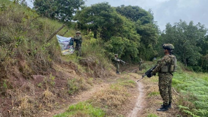 Ejército tumbó propaganda de grupo armado en zona rural de Neiva, Huila