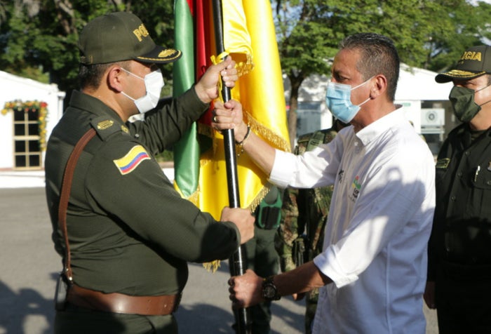 Durante la jornada de transmisión de mando, la administración municipal hizo entrega a través del alcalde, la bandera de la ciudad, al nuevo comandante, a quien comprometió en una lucha frontal y codo a codo contra la delincuencia que viene azotando la ciudad.