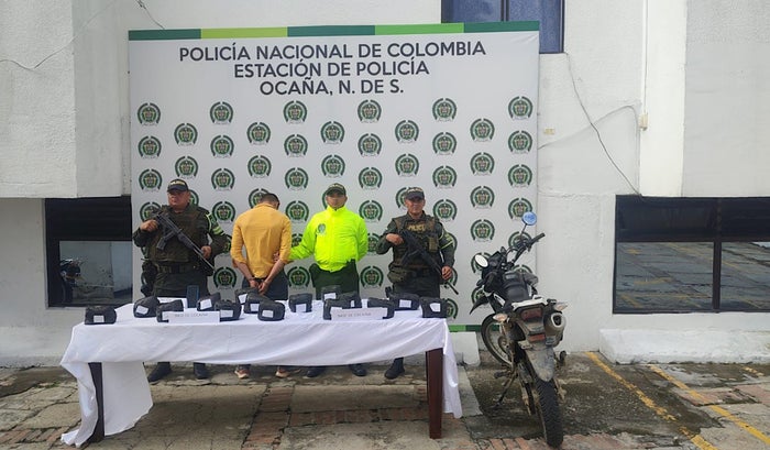 La captura se realizó en la vía que conduce de Ocaña a Convención, en el sector de El Libano. Los uniformados del personal de Tránsito y Transportes observaron a un hombre sospechoso que se movilizaba en una motocicleta con un costal. Al abordarlo, le realizaron un registro personal y encontraron en su poder 15 paquetes rectangulares con un peso de 15.991 gramos de base de coca.