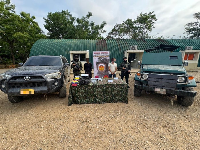Además de las capturas de los dos miembros de la Estructura 33 de las disidencias de las Farc, las autoridades confirmaron que fueron decomisados una camioneta de alta gama, dos motocicletas, municiones, proveedores, material de intendencia y de comunicaciones.