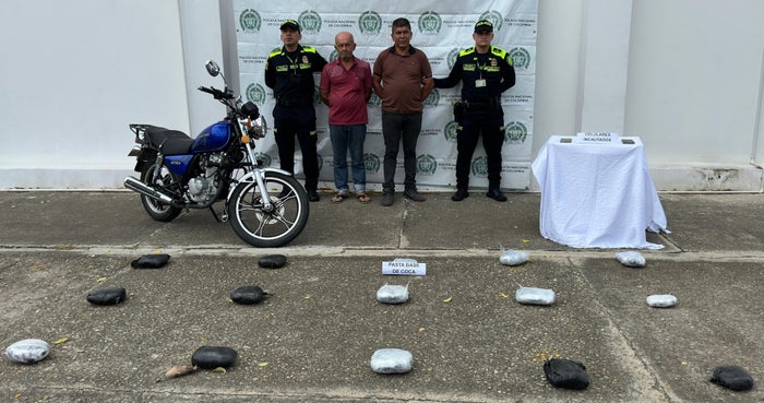 En el desarrollo del procedimiento, los uniformados les hallaron en su poder 15 kilos y 193 gramos de pasta base de coca, distribuidos en 15 paquetes, así como dos equipos móviles.