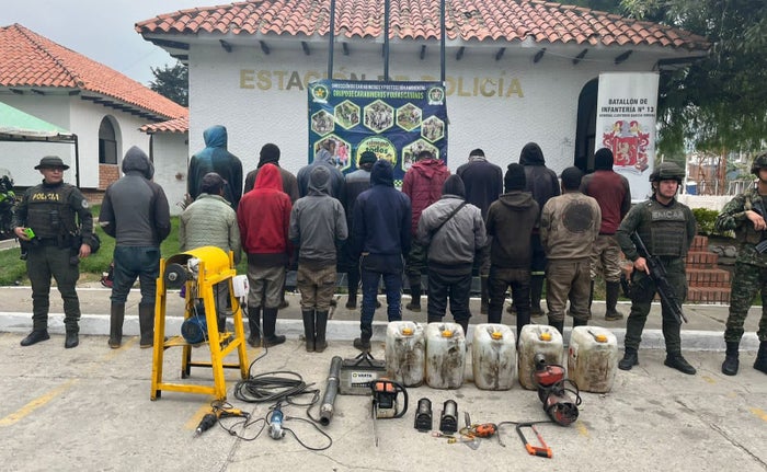 La Policía junto con el Ejército capturaron a 16 personas por el delito de explotación ilícita de yacimientos mineros en el municipio de Cácota en Norte de Santander.