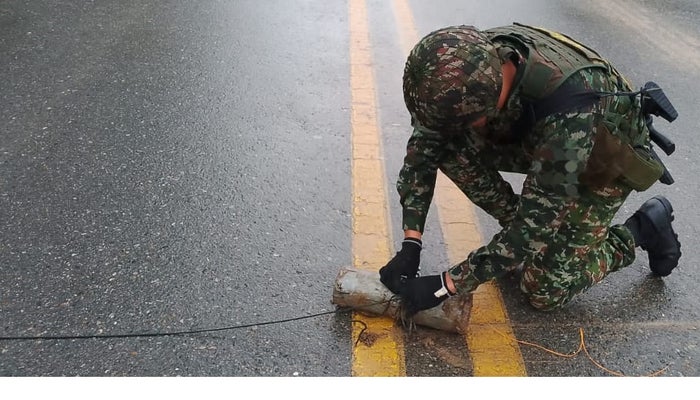 Así mismo, dijo el oficial que son cinco artefactos explosivos de alto poder destructivo que fueron localizados en un área cercana a la institución educativa El Limón, de los cuales fueron destruidos de manera controlada por técnicos especializados del Grupo de Manejo de Artefactos Explosivos de la Segunda División del Ejército Nacional, salvaguardando la vida e integridad de la comunidad, transportadores y transeúntes que se desplazaban por este eje vial.