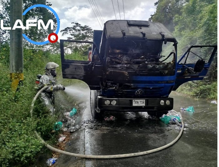 Un vehículo de transporte de gaseosas fue incinerado por grupos armados en Chinácota, Norte de Santander.