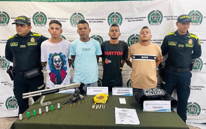 En el marco de la lucha contra el crimen organizado, la Policía nacional a través de la seccional de investigación criminal SIJIN, mediante dos diligencias de allanamiento y registro en el barrio Rebolo de Barranquilla, logran la captura en flagrancia de cuatro presuntos integrantes del grupo delincuencial común organizado “Los Costeños”, quienes deberán responder por los delitos de fabricación, tráfico y porte de armas de fuego y municiones, así como tráfico, fabricación o porte de estupefacientes.