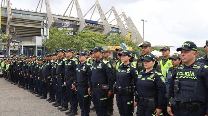 Cortesía, Policía Metropolitana de Barranquilla. Uniformados de la policía en el estadio Metropolitano.