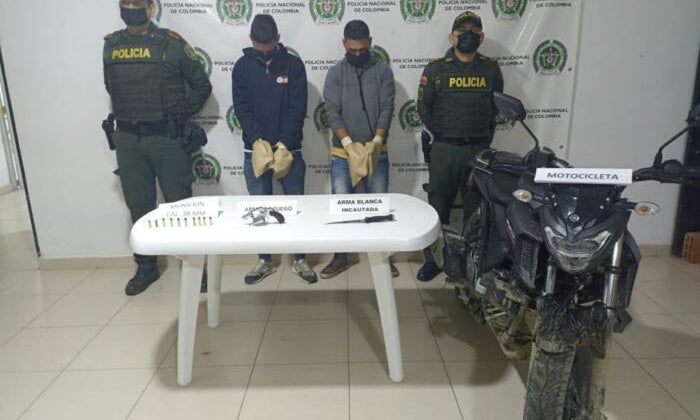 En el procedimiento les fue incautado un revólver calibre 38 con 10 cartuchos, dos de ellos percutidos y un arma blanca tipo puñal, también fue inmovilizada la motocicleta en la que se desplazaban.