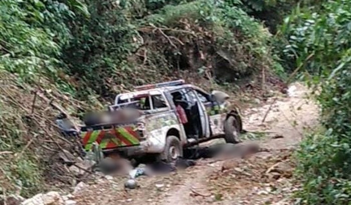 En zona rural de Neiva, en la vereda San Luis se registró el hecho que dejó al parecer ocho policías asesinados, luego de que fueran atacados al paso de un vehículo con un artefacto explosivo cuando se dirigían hacia la zona, al parecer se movilizaban 2 Intendentes, 2 Patrulleros y 4 auxiliares de Policía.
